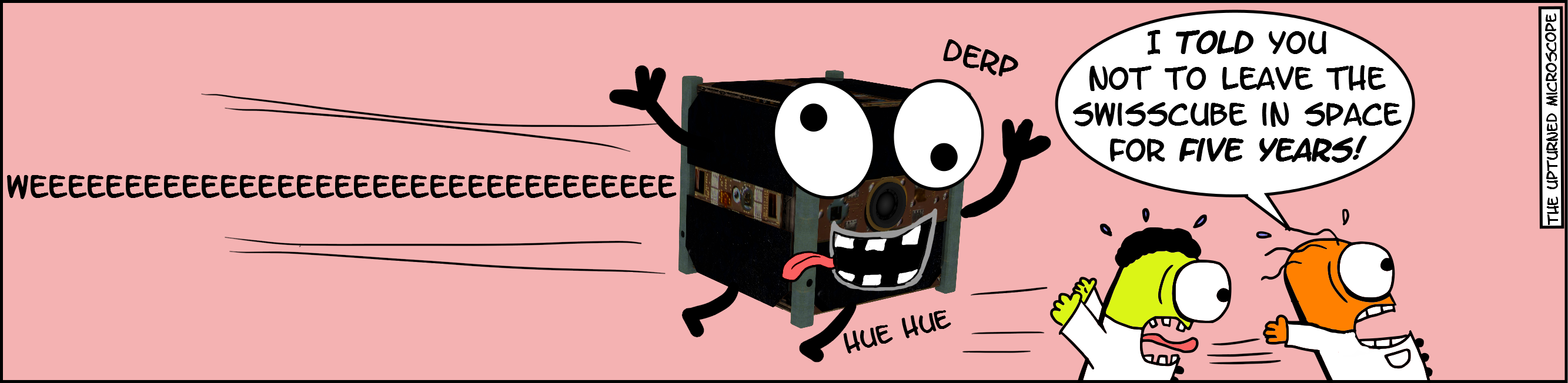 This month, FLASH covered at EPFL’s Swisscube satellite, which has been orbiting our planet for five years now. The comic just came to me naturally.