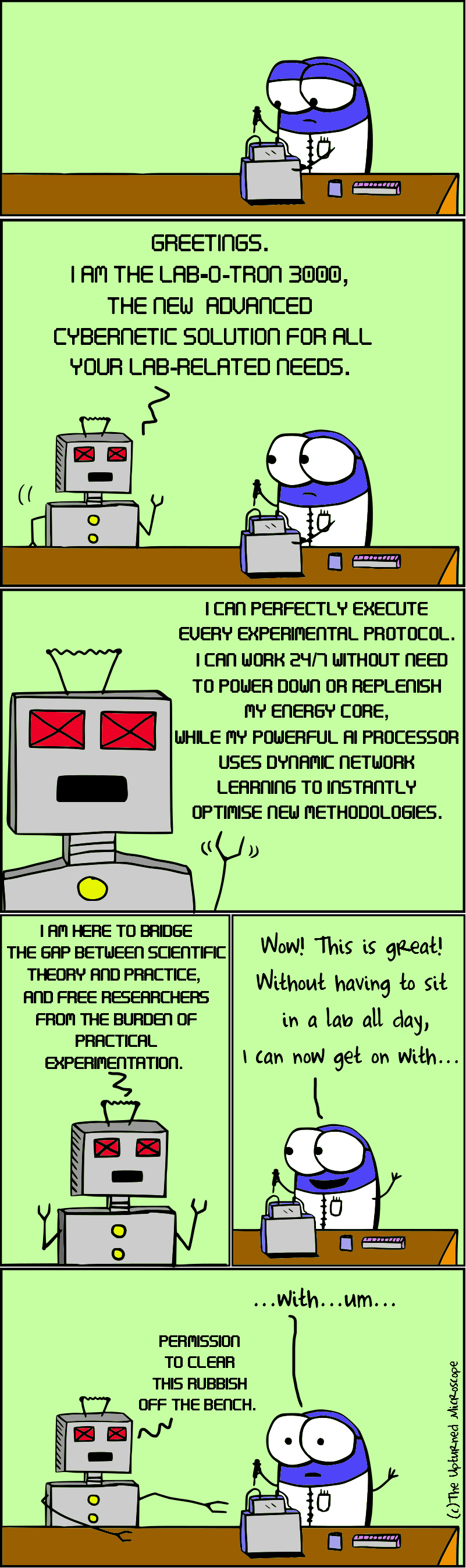 Lab-o-Tron May 1, 2013 Lab-o-Tron 2 More comics LAZARUS now on Smashwords! Follow the Microscope on Twitter! Share this: Click to share on Facebook (Opens in new window) Facebook Click to share on X (Opens in new window) X Click to share on Reddit (Opens in new window) Reddit Click to share on WhatsApp (Opens in new window) WhatsApp Click to share on LinkedIn (Opens in new window) LinkedIn Click to share on Tumblr (Opens in new window) Tumblr Click to share on Pinterest (Opens in new window) Pinterest Click to share on Pocket (Opens in new window) Pocket Click to email a link to a friend (Opens in new window) Email Click to print (Opens in new window) Print Like Loading... Related
