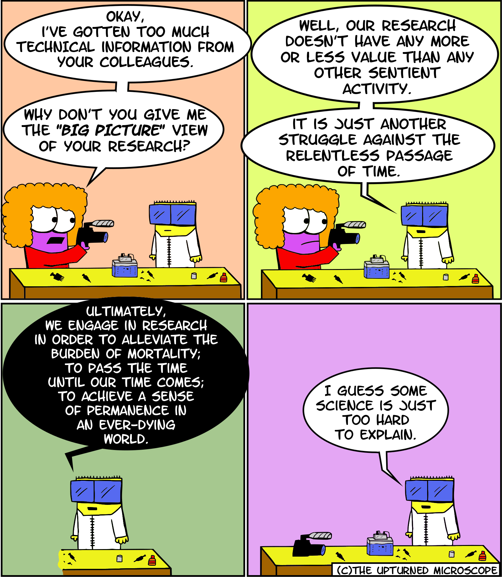 Science communication 3 August 24, 2015 Check out Part 1 and Part 2 Follow The Upturned Microscope on Twitter and Facebook! Share this: Click to share on Facebook (Opens in new window) Facebook Click to share on X (Opens in new window) X Click to share on Reddit (Opens in new window) Reddit Click to share on WhatsApp (Opens in new window) WhatsApp Click to share on LinkedIn (Opens in new window) LinkedIn Click to share on Tumblr (Opens in new window) Tumblr Click to share on Pinterest (Opens in new window) Pinterest Click to share on Pocket (Opens in new window) Pocket Click to email a link to a friend (Opens in new window) Email Click to print (Opens in new window) Print Like Loading... Related