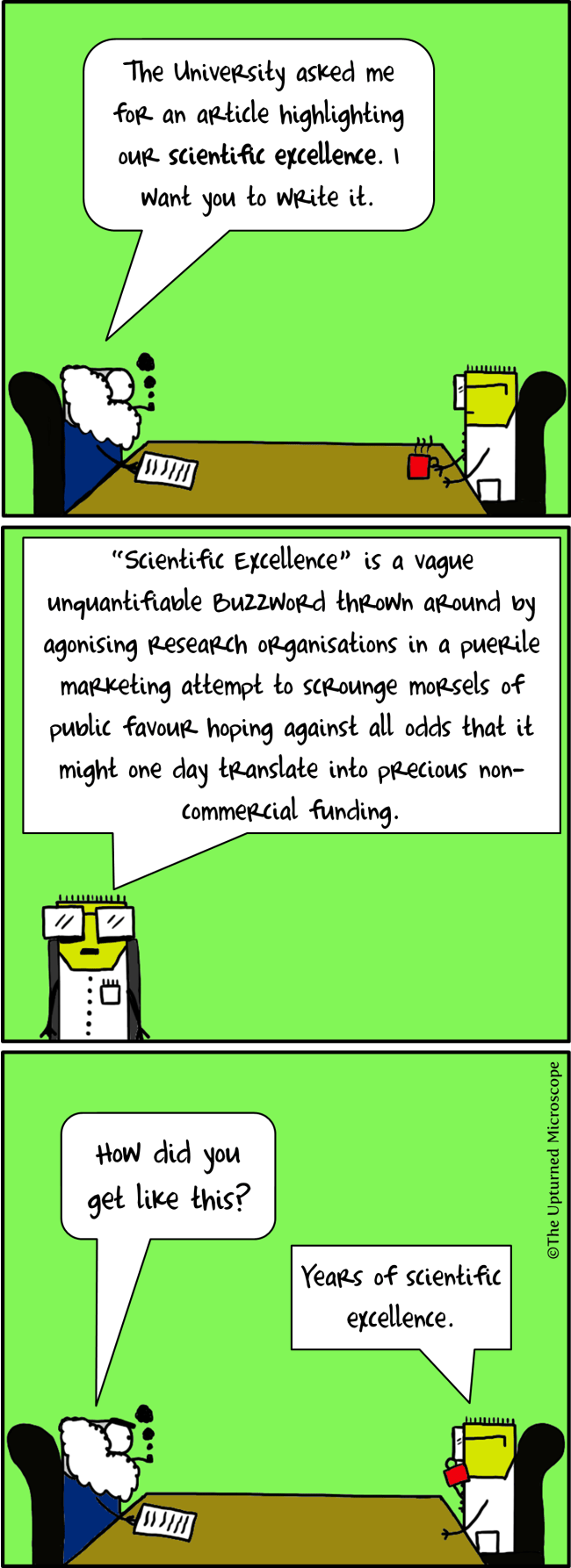 Este es un pequeño comic que actúa como el preludio del siguiente post que será sobre Erwin Schrödinger. A él la “excelencia científica” no le correspondió (por ser un físico teórico) ni en su tiempo (S. XX) ni en su espacio (Austria) pero logró salir de ese problema. Mañana 12 de agosto es su natalicio # 125 y su post se publicará hasa el día siguiente.