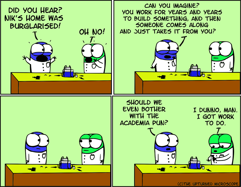 Less than a week later, the comics rise again. That is the Microscope’s answer to the burglars.